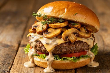Spread a thin layer of sauce on the bottom bun and a thicker layer on the top bun. Place lettuce (if using) then the patty on the bottom bun and smother with sautéed mushrooms. Top with any other desired toppings and the top bun (of course). Serve immediately.